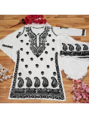 Modal Cotton Black on White Kurta Set – Ghas Patti Embroidery